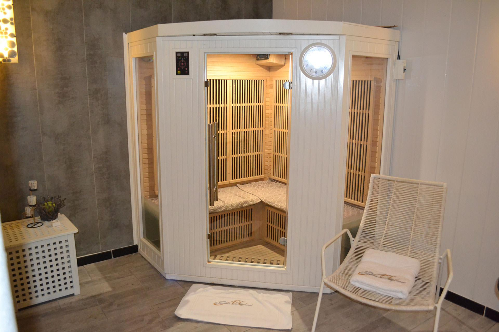 Cinq chambres de grand standing (dont une familiale) dans la maison de vos hôtes Marie et Franck, au premier et second étage, chacune avec salle d'eau privative. Chambres climatisées, avec tv, connexion internet. Salle à manger et grand salon au rez-de-chaussée. En rez-de-jardin, salle de séminaires pour le travail et pour vos loisirs, espace bien-être avec sauna, hammam, spa, salle de gym, salle de fitness et salle de massage.