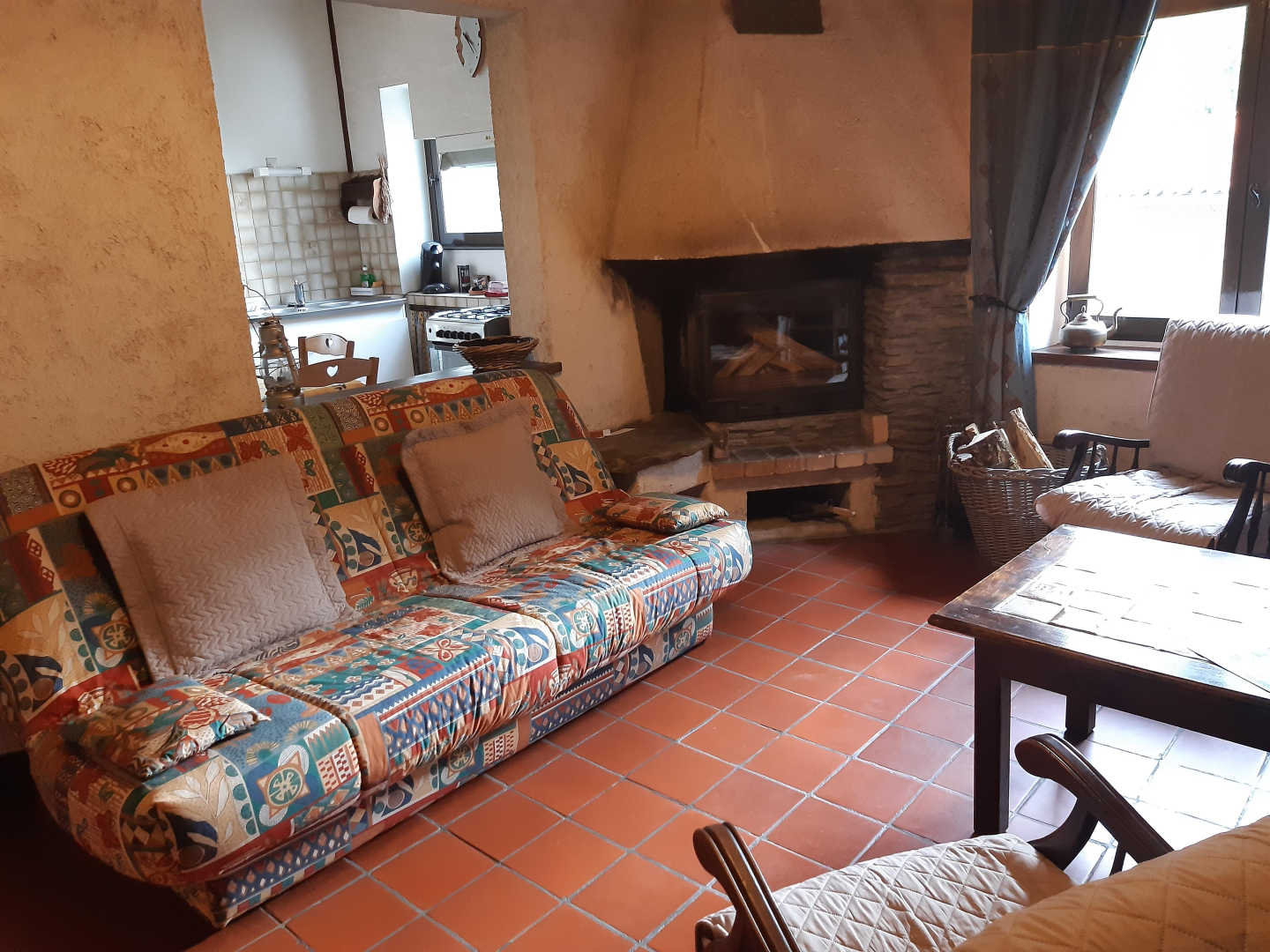 Gîte à proximité de la maison des propriétaires, accès à l'étage par un escalier extérieur. Au rez-de-jardin : cour close (salon de jardin, barbecue), buanderie (lave linge, sèche linge, rangement matériel de loisir). A l'étage : terrasse couverte (salon de jardin), cuisine équipée (batterie de cuisine complète, micro-ondes, cuisinière gaz, réfrigérateur-congélateur, lave-vaisselle), séjour (canapé lit deux personnes, tv, lecteur DVD, jeux, lecture, malle pédagogique du Parc Naturel, console de jeux, cheminée avec insert), chambre (un lit double, lit bébé). Au ½ étage supérieur : chambre avec salle d'eau privative (un lit double, deux lits simples superposés, accès loggia), salle d'eau, wc indépendant.